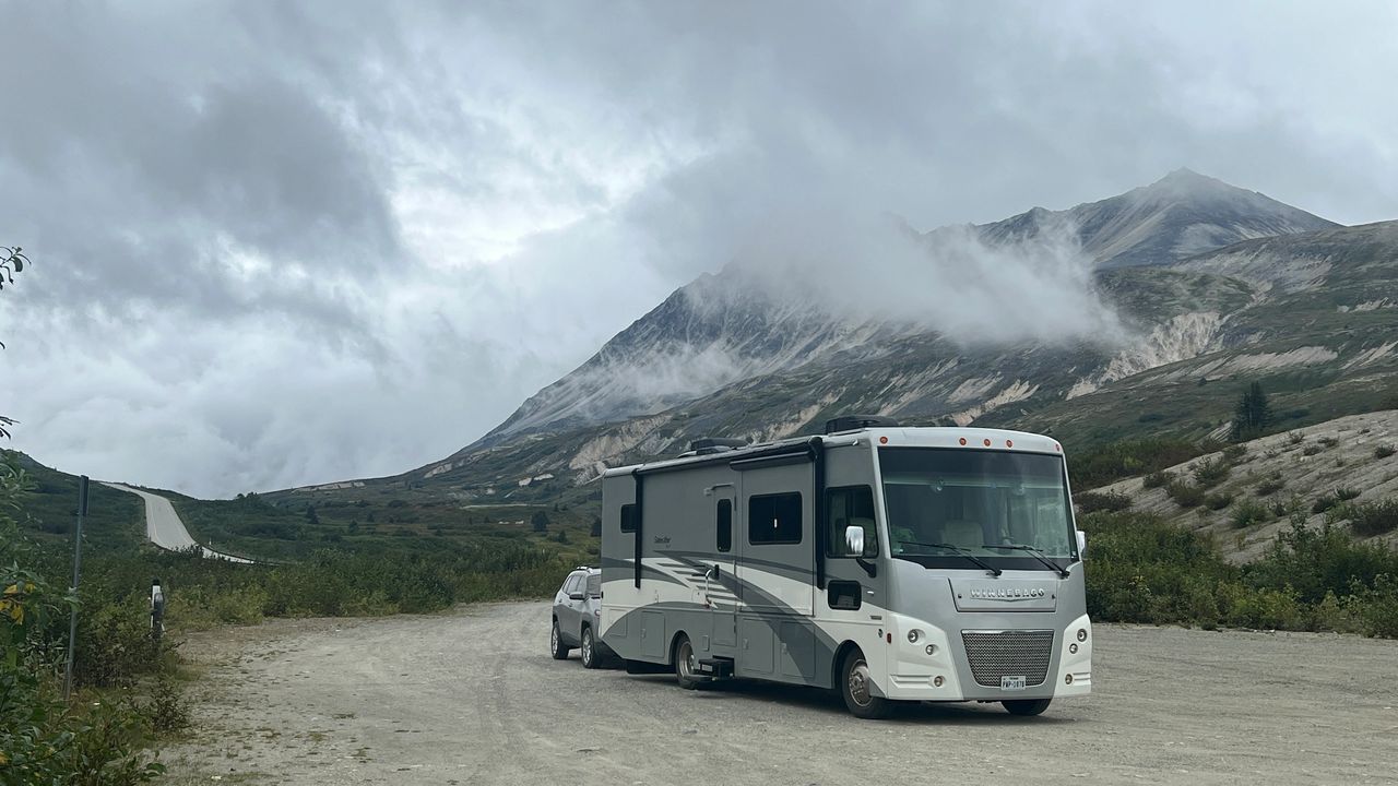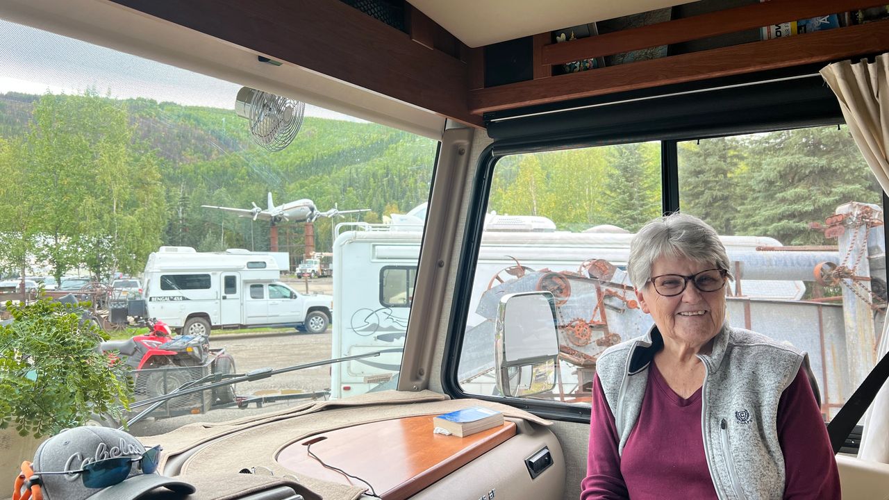 Our goal today was to fuel in Tok, cross the border into Canada and camp at Destruction bay. This would have been a 280 mile day but we did not make it that far and stopped at Lake Creek CG in YT. We did cross the border and were now in Canada so that was a success. Had no issues crossing the border and Mom got her first stamp in her brand new first ever passport at 83 years young.