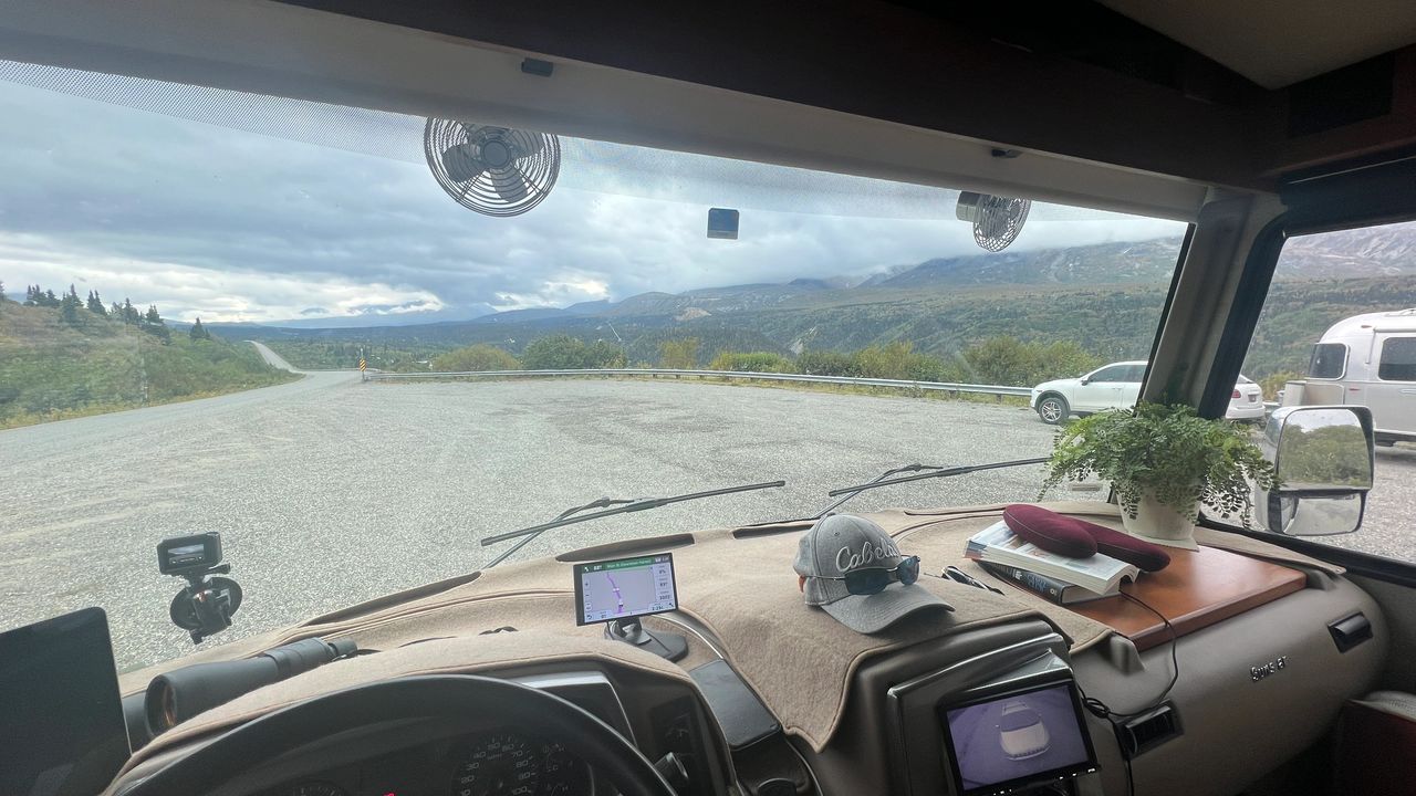 Today we make the turned south to Texas. We headed back to Fairbanks, then down the Alaskan Highway towards Tok. Just outside of Fairbanks is North Pole Alaska. Mom and I were here in 2018 so we pull in and do some power shopping. I scored a nice sweatshirt. Snapped some Santa pics, dropped off our wish list for Santa, and got on our way. We planned to make it to Deadman Lake CG but did not even make it to Tok. We stopped 50 miles short of Tok at a turn out on Dot Lake. It was a nice spot with a view so we parked it and will do Tok tomorrow.