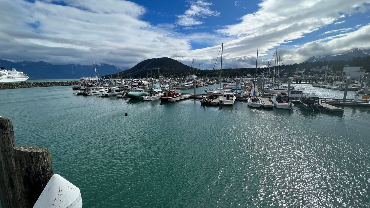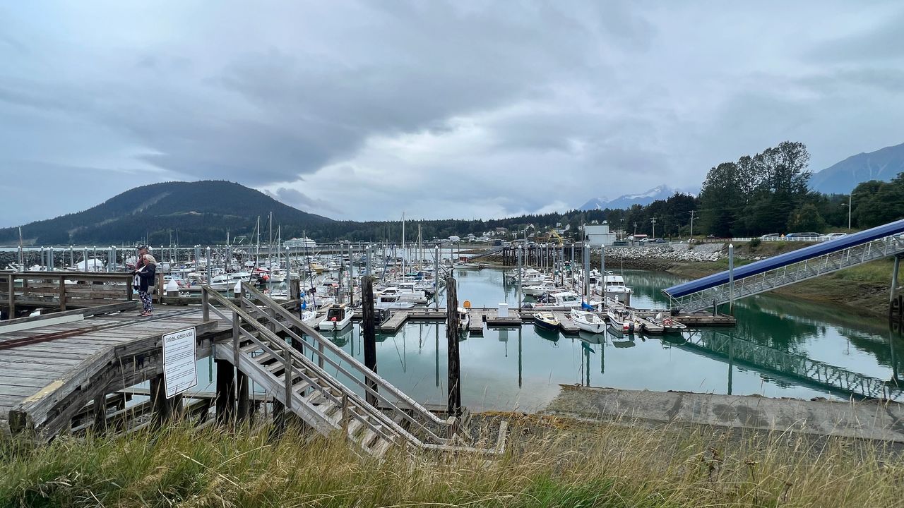 We get out the E-Bikes and toured the town and do a walk about down town. Power shopping, we actually ran into Scott and Tami, they had come in a couple days early, so we hooked up for dinner at the Lighthouse on the wharf and had a great Halibut Fish dinner. Mom had fish tacos. During the day we drove out to the north east side of town to Chilikoot lake and RV park. We took some pictures and spoke with some locals and then headed back to camp.