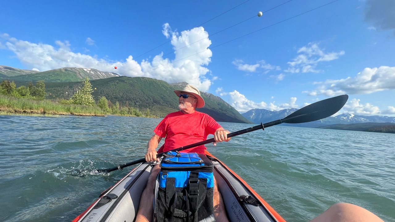 Another beautiful day on Kenai Lake and the wind even died down a bit. We met some wonderful people, Wally and Jill of @FoxPartyOf3 and Scott and Tami of FoxRVTravel.com. Besides seeing wonderful places and doing incredible bucket list things, we meet great people. People who like to get out and do things, mainly RV Life on the road. Both of these couples are full time RV lifers. One in Pickup camper and the other in aa 40' bus. All kinds of people, all kinds of travelers, all living the dream on the road. Today, our last day at Quartz Creek Campground, we put the kayak. back in the water and tried to get some video of the orange colored sockeye salmon in the stream, but the flowing water was just a bit murky. All we could make out were shadows and a flash of orange. Wally and Jill (foxpartyof3) came over for a bonfire and some s'mores. We chatted and talked RV life, it was good times. But had to call it a night because tomorrow is a travel day as we make our way to Homer, Alaska.