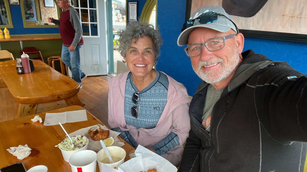 Our first full day in Homer, we E-Bike out on the spit to the harbor, shops, and restaurants. We tour the boat docks, shop the shops, the have some fish and chips and clam chowder at the Boardwalk Fish & Chips. We decided to book a trip to Seldovia Alaska tomorrow on the ferry. We plan to take our bikes and make a day of it. To finish off our days adventure, we drove out East End Road beyond Homer. We did a short hike at a state park and saw some awesome glacier views across the bay. We also got long walk or two on the beach as well. The tide is 20+ feet so it goes out quite a ways. Everyone from the campground is out walking and letting their dogs run, splash, and chase sticks. Some kids actually went swimming, but at 59 degrees, we are not going in the water for sure. Some kite boarders were out as well cutting it up in wet suits. Too cold for me for that as well. Another night of Netflix and the day is over for us, Tomorrow, we adventure to Seldovia across Kachemech bay, a 45 minute ferry ride with bikes in tow.