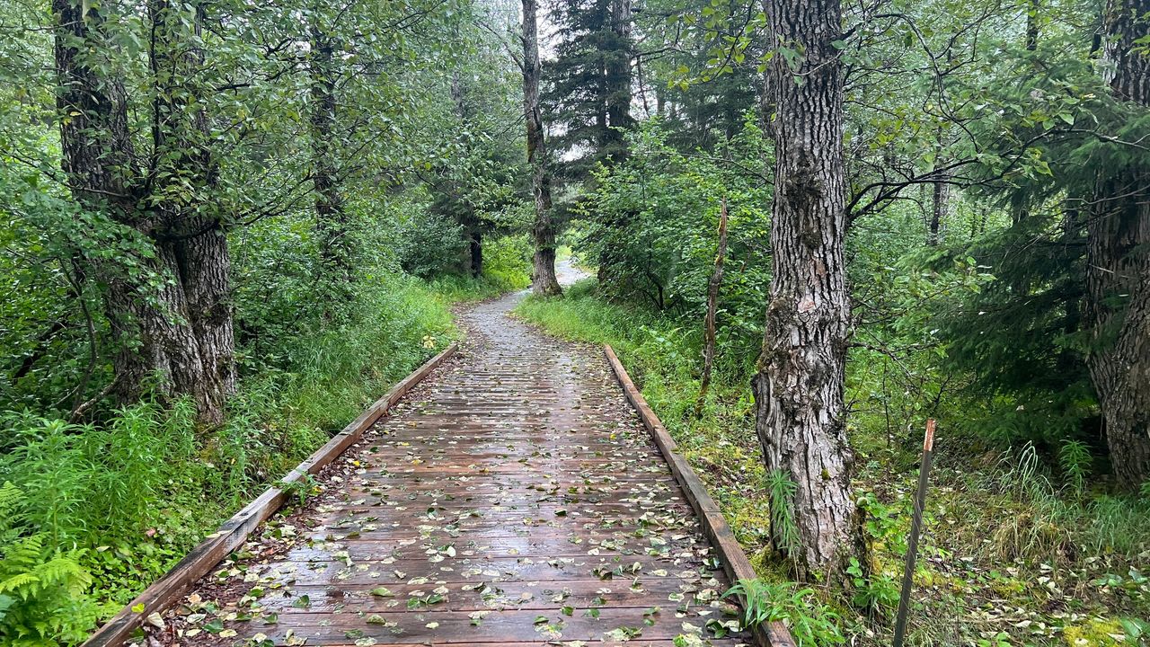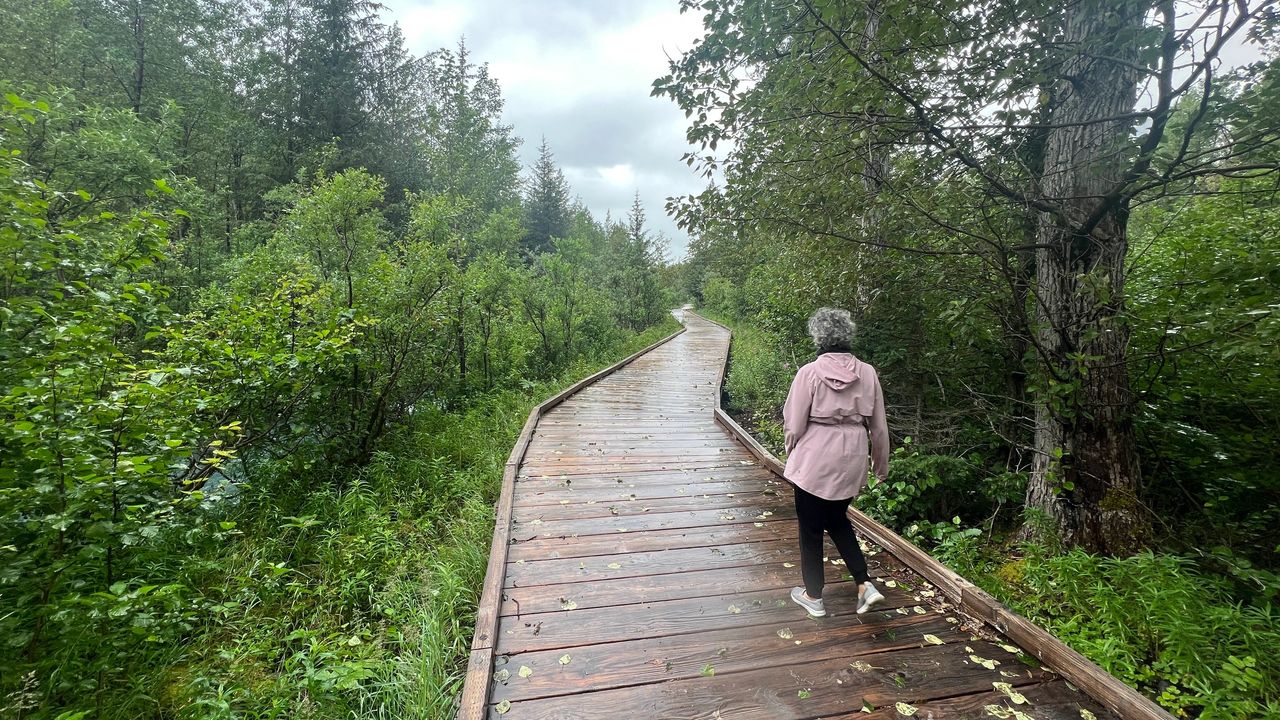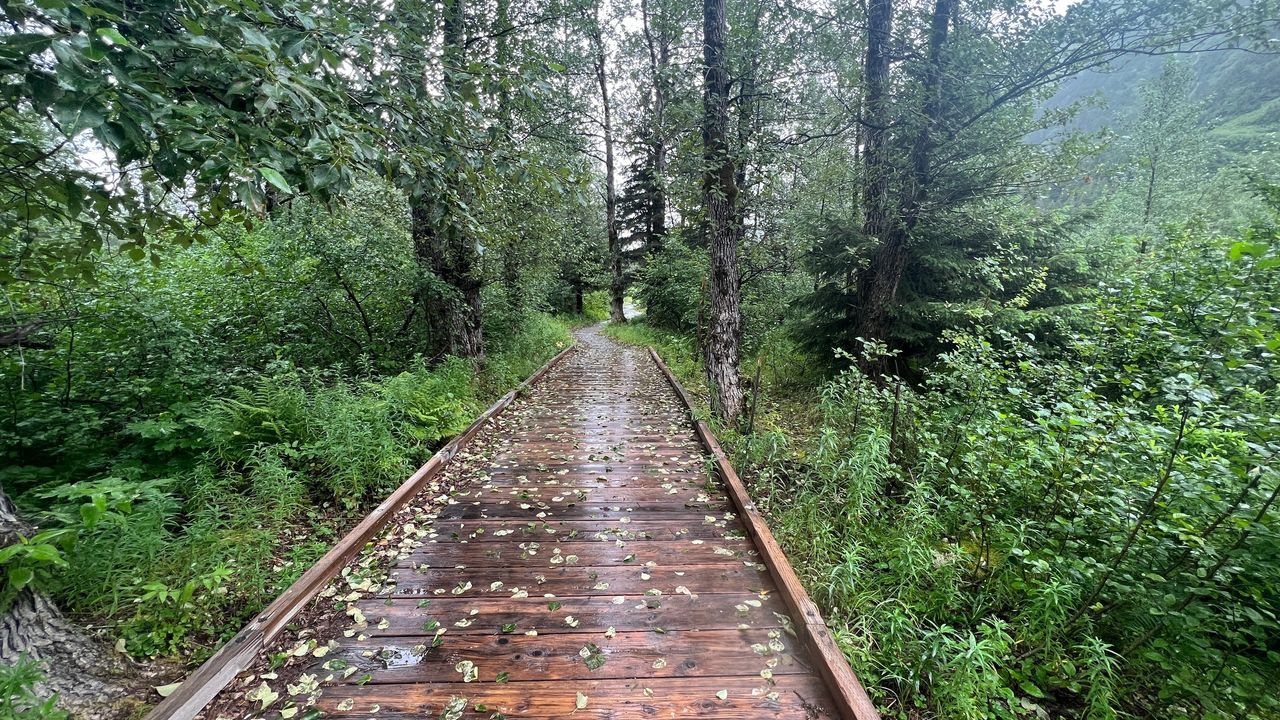 Today was another sleep in rainy day. Spent quite a bit of time on our fourth trip video so that was good. Hope to publish that tomorrow, we will see. Due to rain and trees, Starlink is dropping out every 3-4 minutes. Ok for texting and short phone calls, but not so good for a large video upload. Finally, late in the afternoon, we got our rain gear on and hit the Portage trail for some cardio. We just ate too much yesterday at Double Musky Inn to sit idle all day. It was not a long hike, just a couple miles or so, but it was still nice to get out in this cool weather in the low 50's.