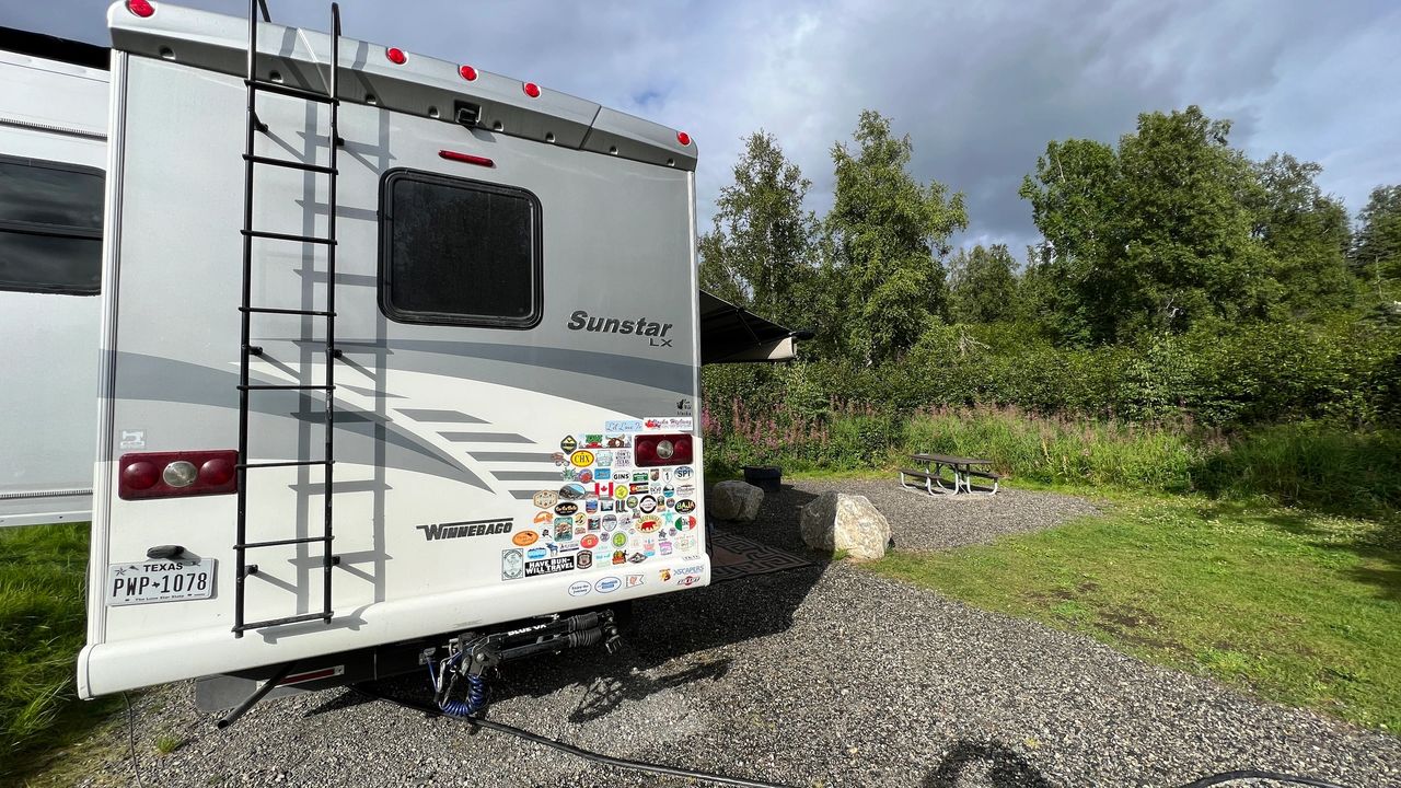 It was overcast so we did not see Denali at the first view point. We made it to the camp ground to get one of the last few sites open. We set up camp and got our first hike in around the park. This park was built in 2017 and quite new. I was actually here in 2018 and it still looked the same. Paved roads and 50amp electric. We thought we were at the Ritz having non stop electric and water. No navy showers tonight!