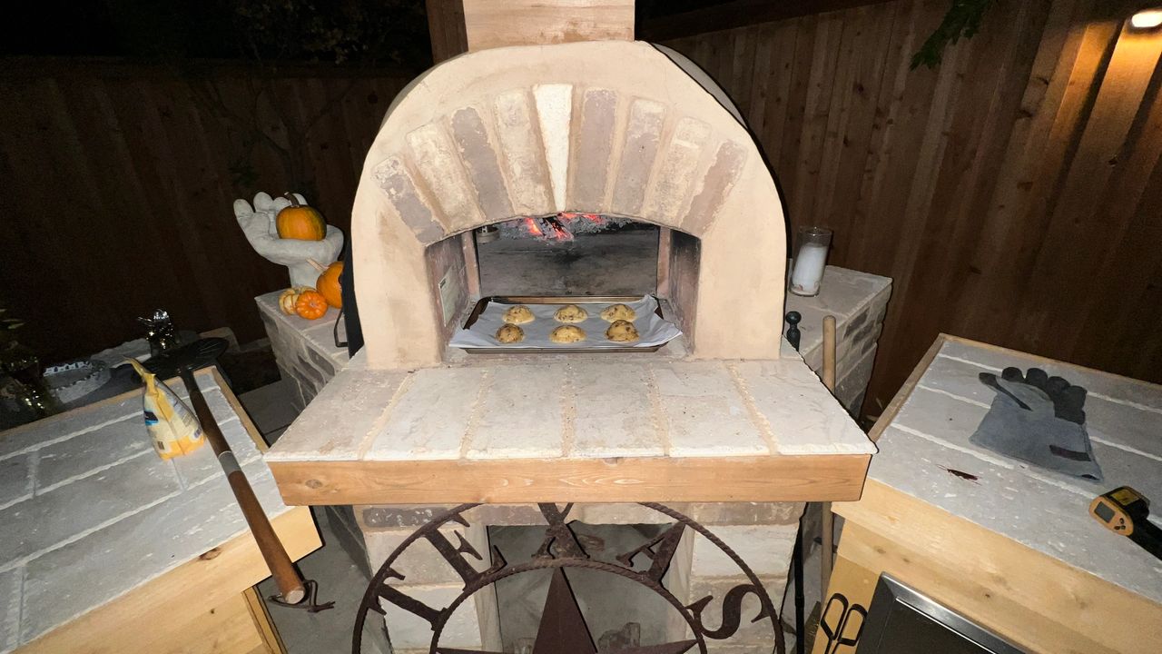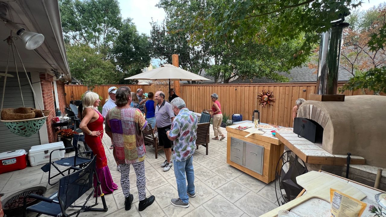 We have been gone so long this summer, we thought we would have a Pizza party with friends to catch up on everyone's adventures. It was just before halloween so some showed up in costumes. I got to showcase my new pizza oven cabinets I just built this week and also tried baking chocolate chip cookies in the oven. All turned out great. Fun times were had by all.