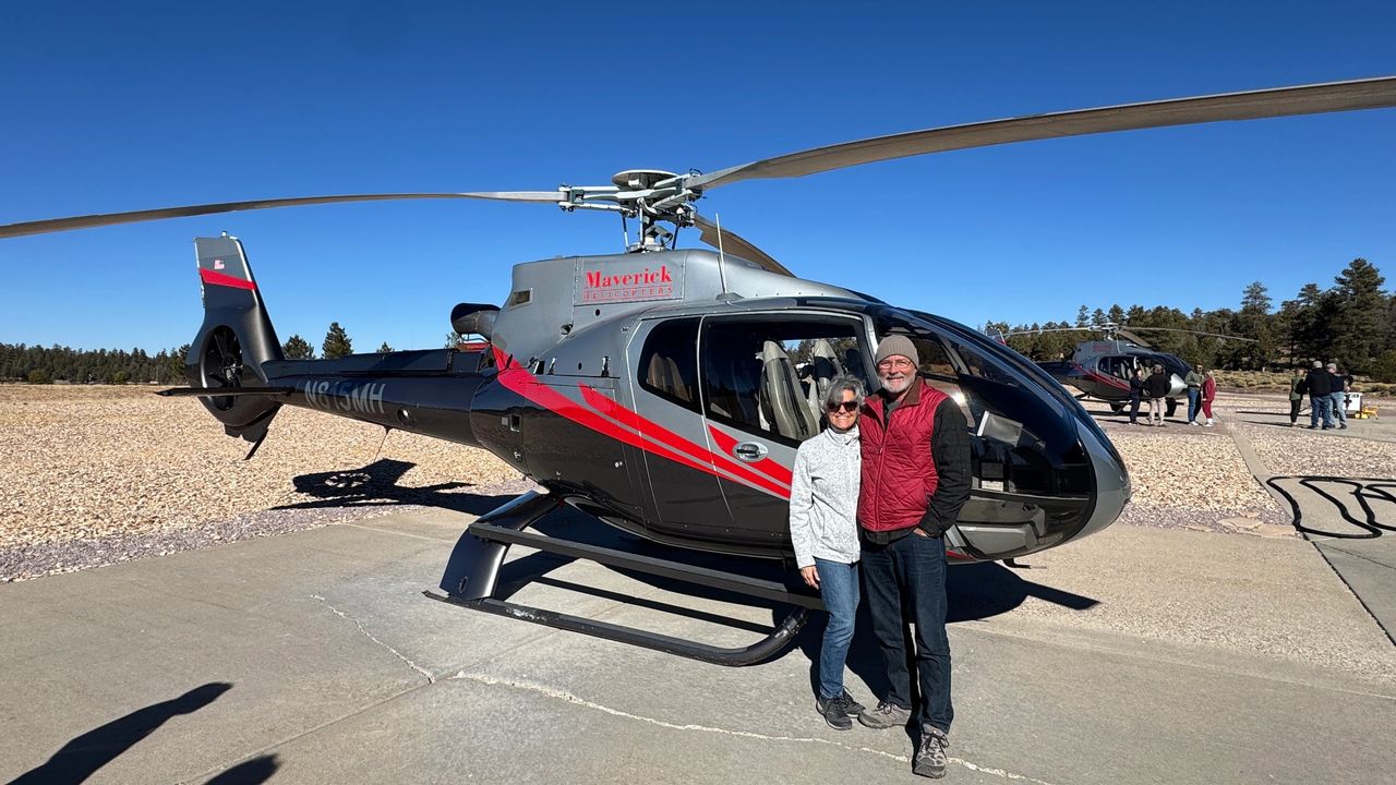 Today we took a helicopter tour of the Grand Canyon, skies were clear, blue, and cold. The flight was with Maverick Helicopter Tours and it lasted 45 minutes over about 100 miles. We started from the GC Airport 5 miles south of the National Park. It was a great tour with perfect weather and we got lots of pictures to document the event. Afterward we headed into the park after an hour long line to get through the gate! Don't people know it is winter, go home, why so many people here? We drove the south rim and stopped several times for some awesome photo ops as the sun was going down. We got back to the RV about 6pm and ate left overs. Shower night, then some binge watching compliments of Starlink Internet.