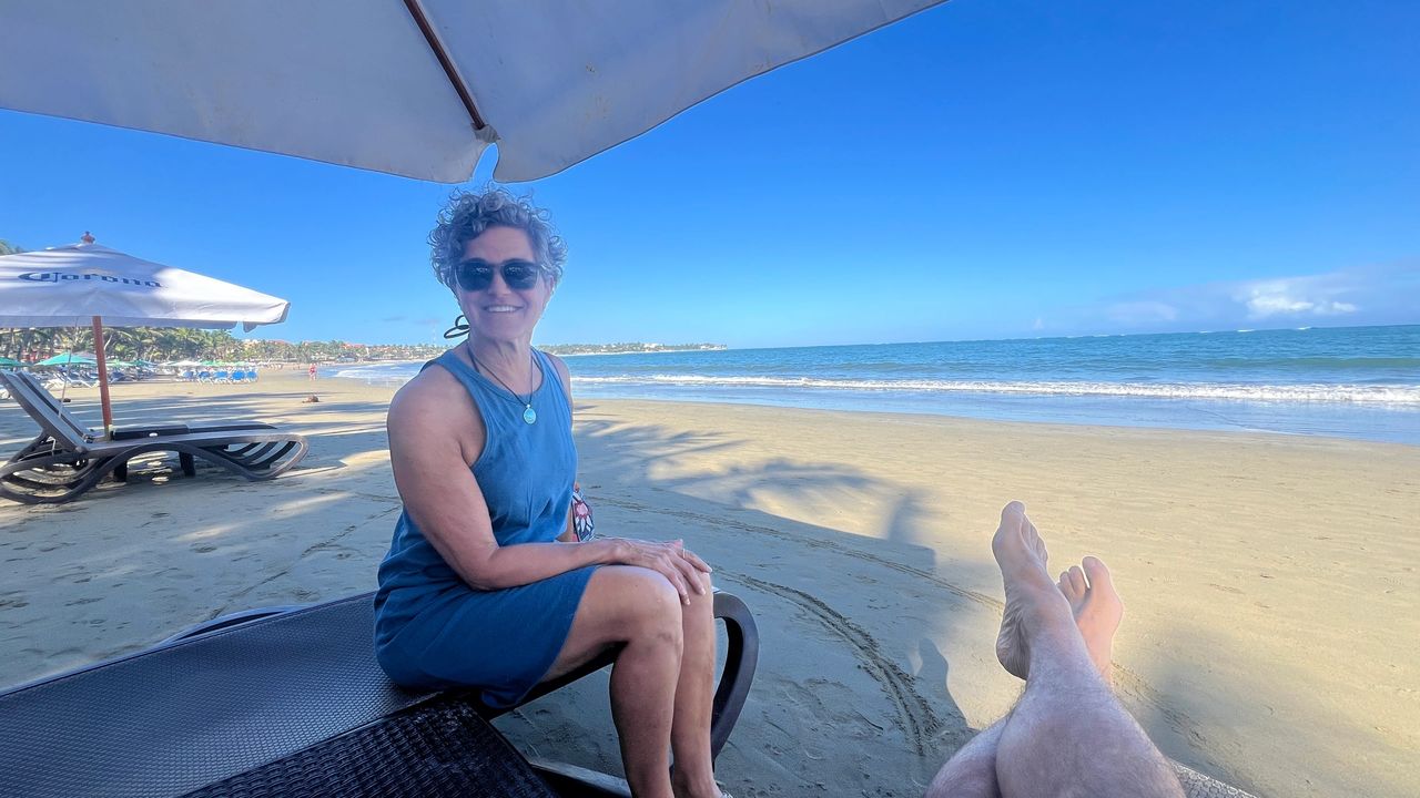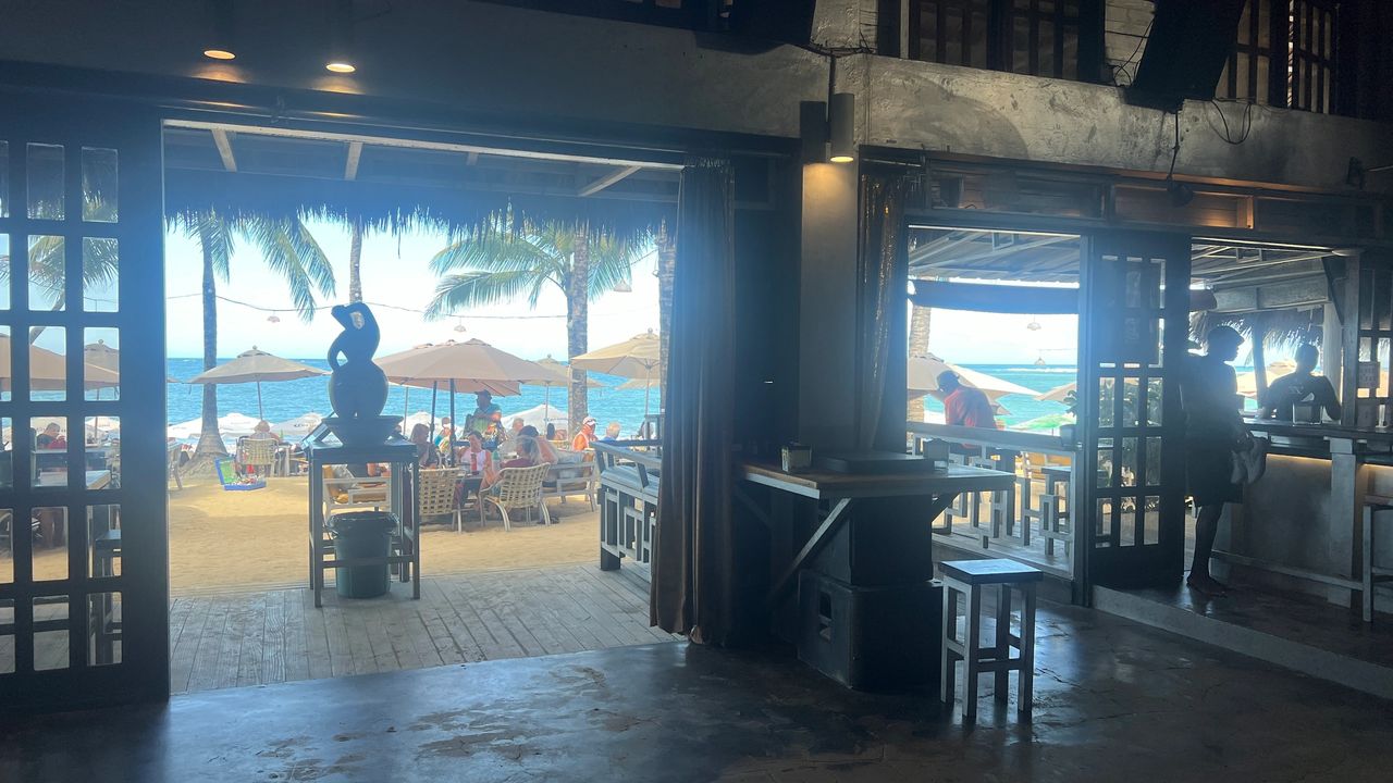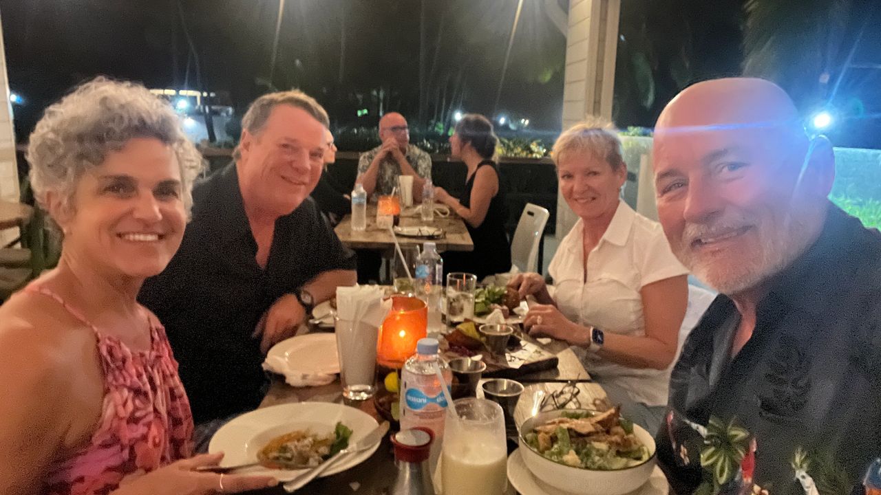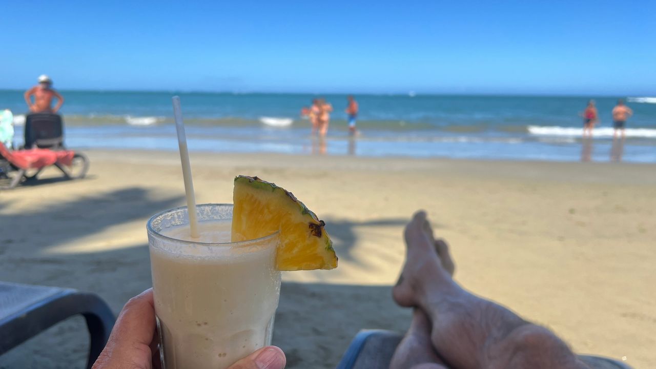 Today we made our first trip to the beach in Cabarete. It's about a 2 mile drive to downtown where we went to Ojo's Beach club. We got there around 10:30am and snagged a couple loungers and umbrella on the beach just as they were setting up. It was not crowded but more people continually showed up, mostly foreigners (snow birds) from places llike Canada, New York, Germany, etc. all enjoying the 80 degree winter here in the DR. We had a nice lunch on the beach and dip in the ocean. Local peddlers came buy selling the usual stuff from hats, jewelry, cigars, massage, or water excursions. We called it early and headed back to the villa around 1:30pm. We dipped in the pool and then headed back to the airport. Today Tom and Nan were flying in to visit and they landed at 3:30p from DFW/MIA. It was a 45 minute drive due to Friday traffic and man they drive crazy here. They pass on the shoulder and in on coming traffic, the motorcycles are like flies buzzing around you. Gas is 239 pesos/liter which converts to about $15/Gallon thus the reason all the motor bikes, little skinny ones not big American bikes. Funny to see a small motorbike with a family of three or four passing you on the shoulder. We got to the airport and picked up our party of two and make our first stop the grocery store to reload up on rum and a few other things. We hit the pool a bit, sip some local rum, and then make our way to dinner. We decided on a place called Yalla. "Yalla" means "Hurry up, go faster", and I don't think it described the food service, must be something else... Anyway, we had a nice meal, with the sound of the waves and beach view, but it was dark, so you could not see the beach, but you could hear it and their always seems to be a nice breeze in Cabarete. A short walk back to the car and then back to the villa, another shot of rum, then we turn in for the night. A fun day, pool, beach, dinner, & friends.