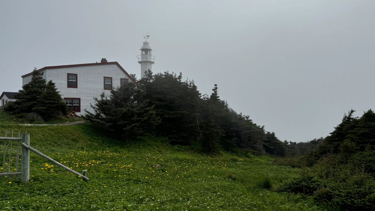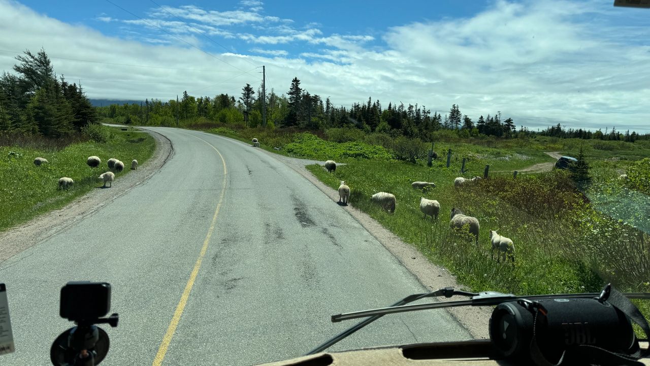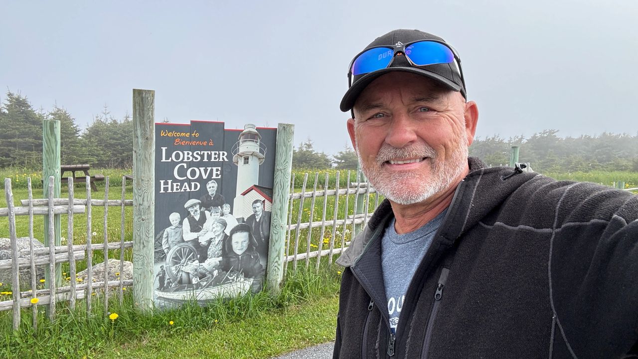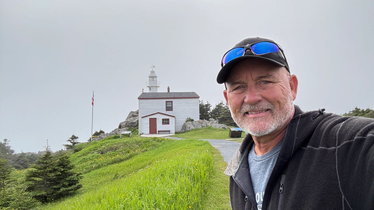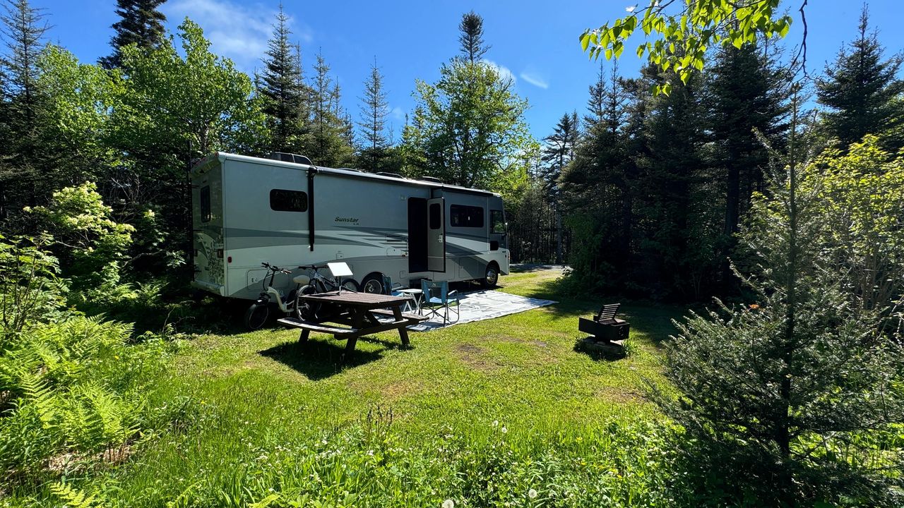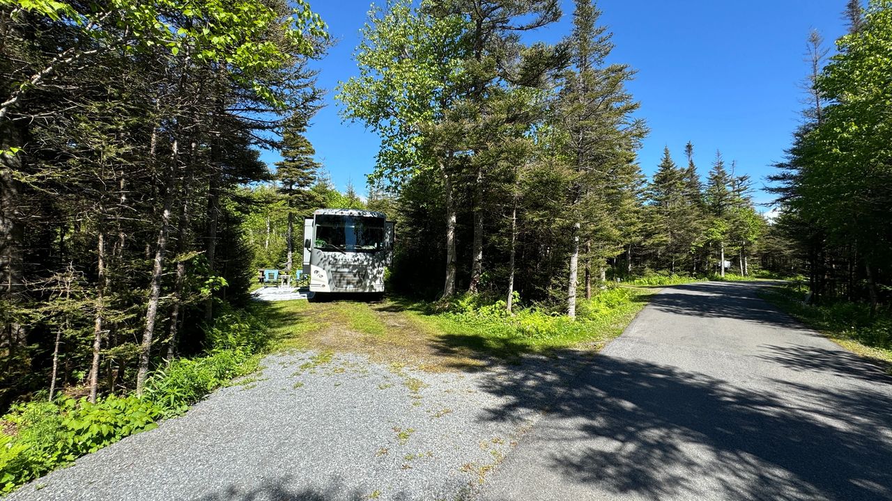 Saturday, June 8, another travel day. Before we head out, we stopped by the beach for a morning walk and bike ride. The fog came and went that left some great views. The best part was we got in 2.5 miles of beach walk cardio. We left Shallow bay about noon and drove only 32 miles to our next stop in Gros Morne National Park. We will be camping in Berry hill Campground near Rocky Harbor, but in the heart of Gros Morne National Park for 5 nights. This is the top national park in the province, and as we get into the high season, more RV's and campers are on the road. Today, we went into town to visit the visitor center and scope out Rocky Harbor. A quick trip to the lighthouse, was nice, but the fog just did not give way to good views, so we will revisit another day. We finish the day with happy hour by the fire, sunshine, and much warmer weather up the mountain. I rode my bike into town only to be greeted by fog and cooler temps. We picked up some swag (stickers), and then back up the mountain to the campground. Several hikes in the area look very inviting, more to come in the days ahead.