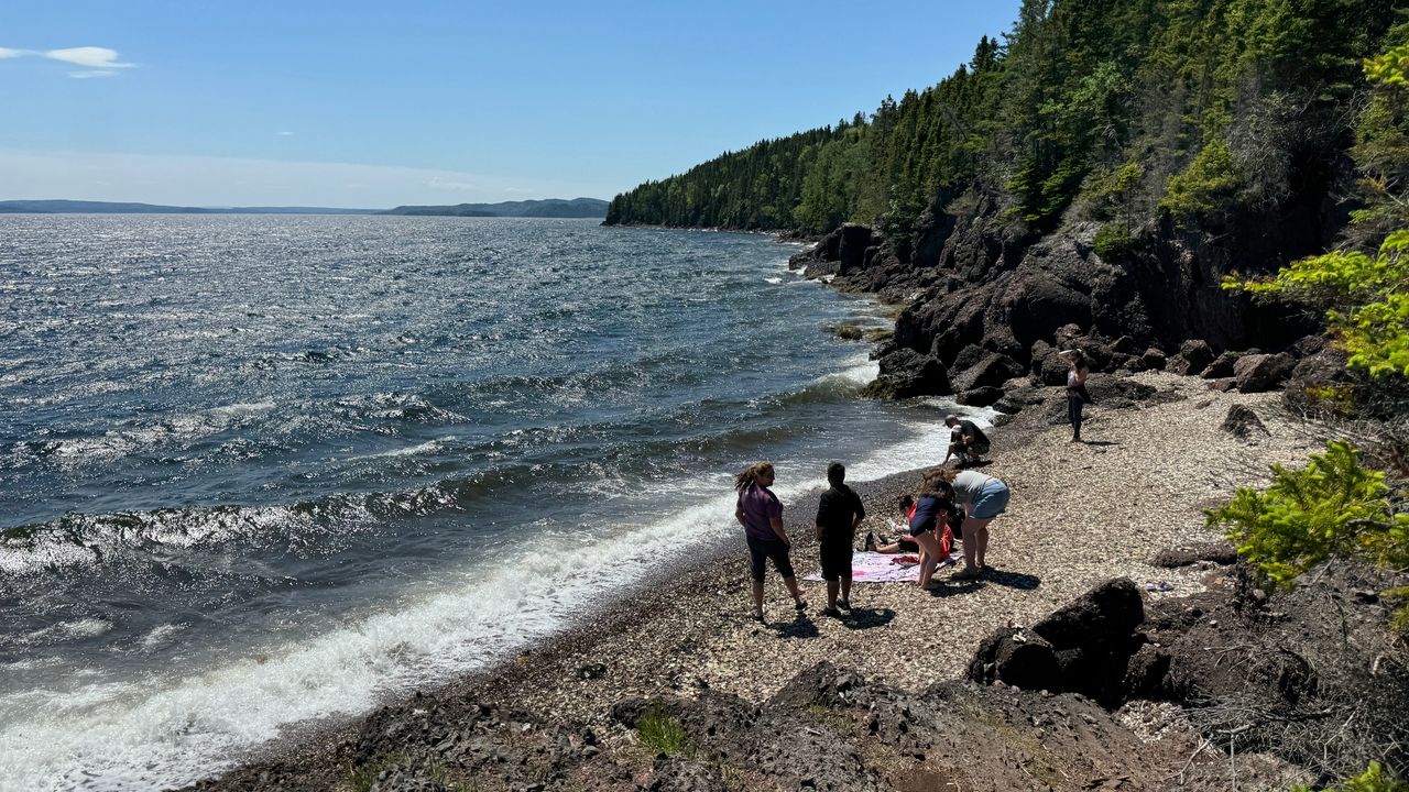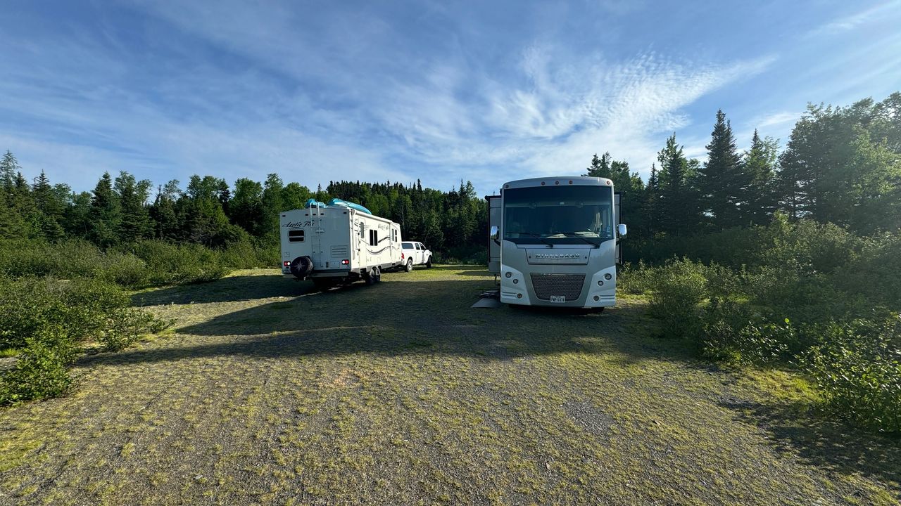 We woke up to sunshine for our travel day. We have been here four days now and had some of the best weather, and some not so good weather. Our first stop for the day was Wild Cove where an iceberg was reported. (We have an app for that), so off we went to score another iceberg siting. It did not disappoint. Next stop was Glassy Beach near Springdale NL. Not a long hike, but lots of glass, it was just not well tumbled. It looked more like trash glass then sea glass that has been tumbled and polished for many years. Next up was to find a place to stay. We did not want to do an RV Park so we rolled on down Trans-Canada Highway 1 towards our next destination. We ended up a half mile down a hunting cabin road at a pull out. It was a bit buggy, but certain quiet and peaceful.
