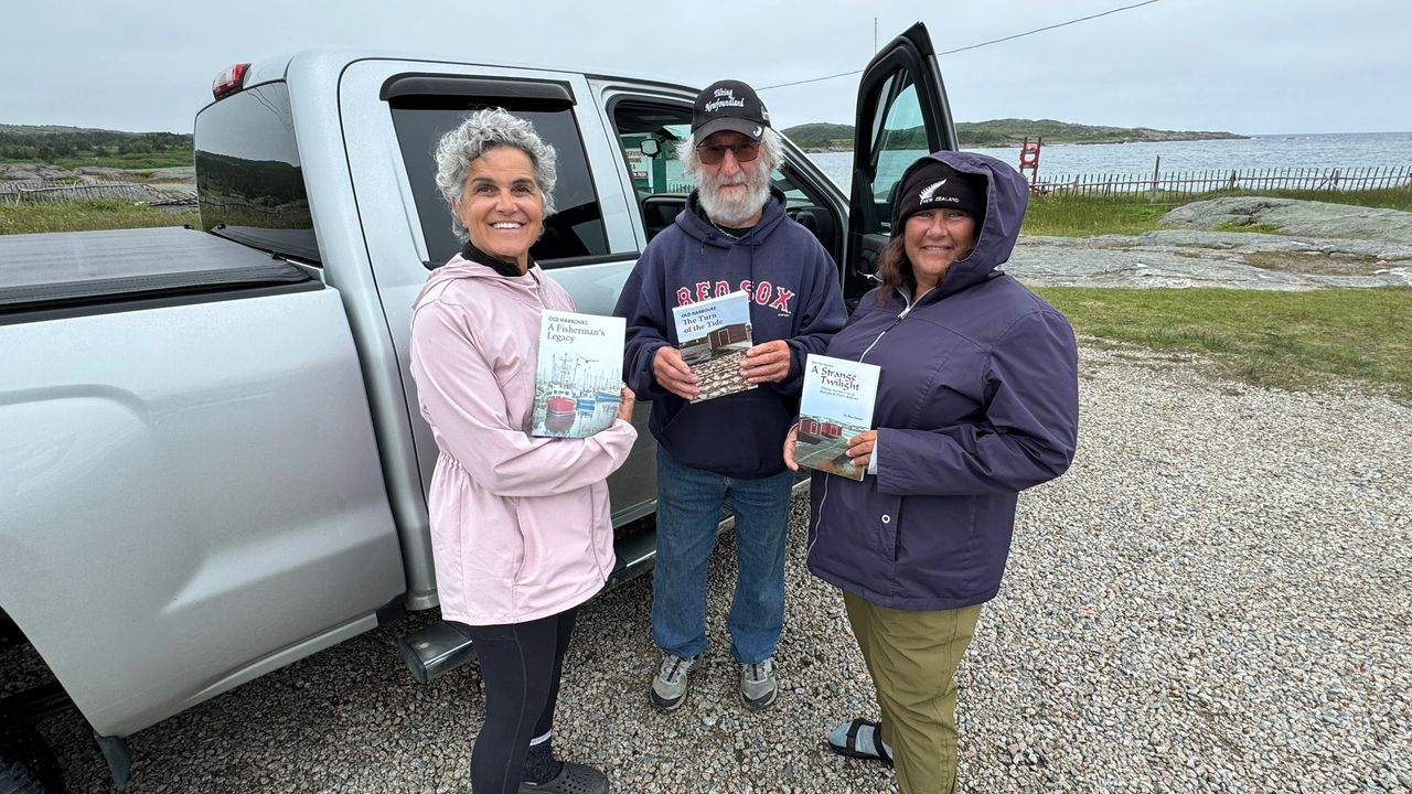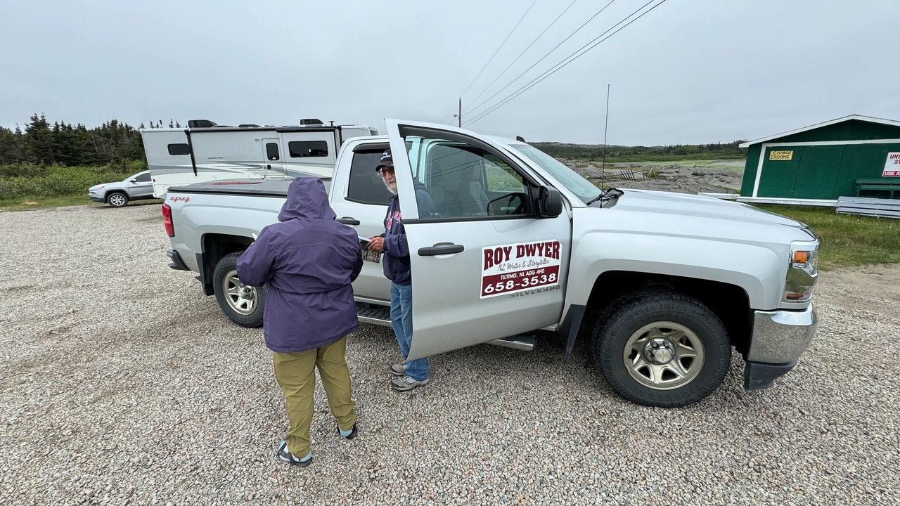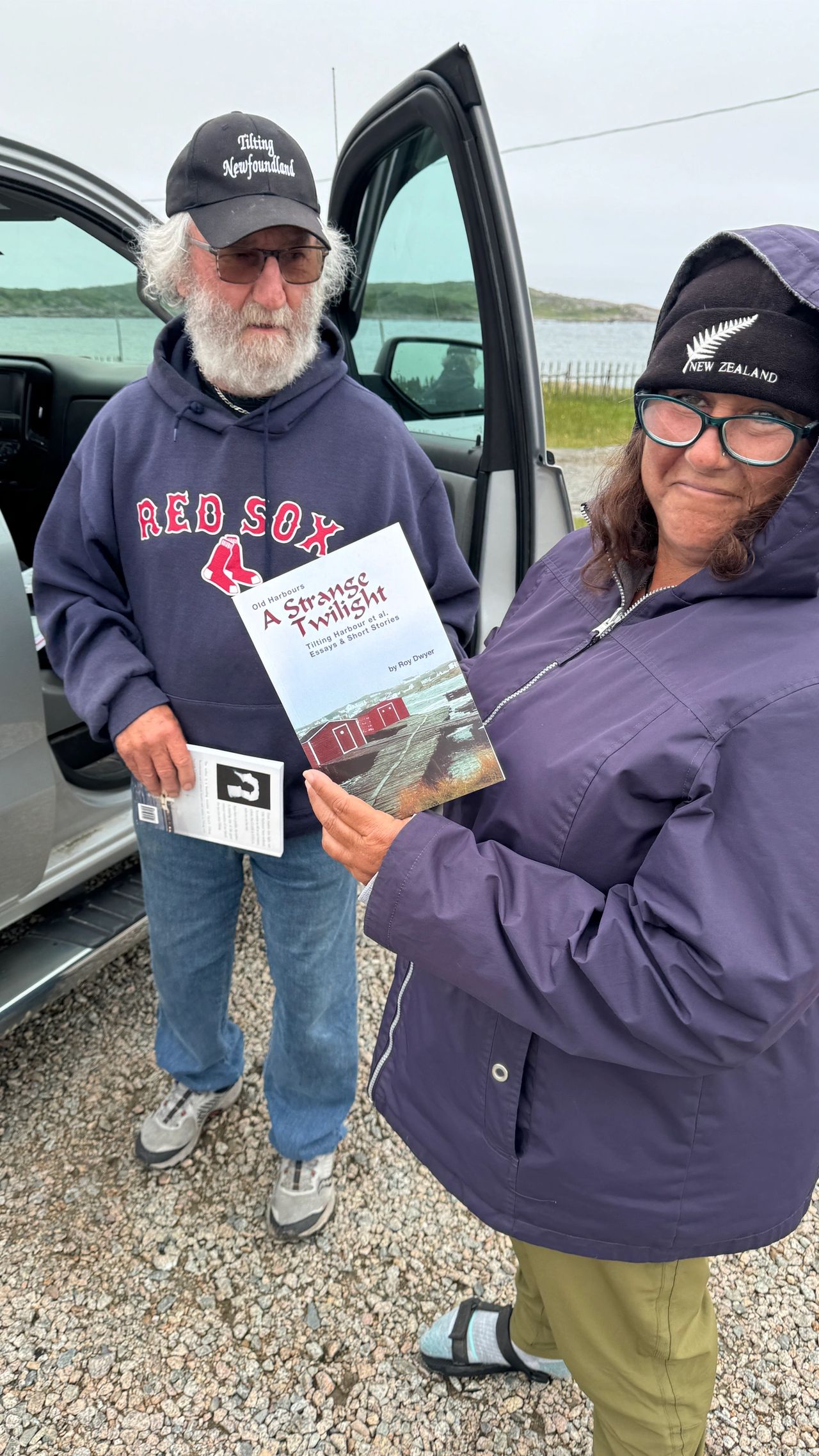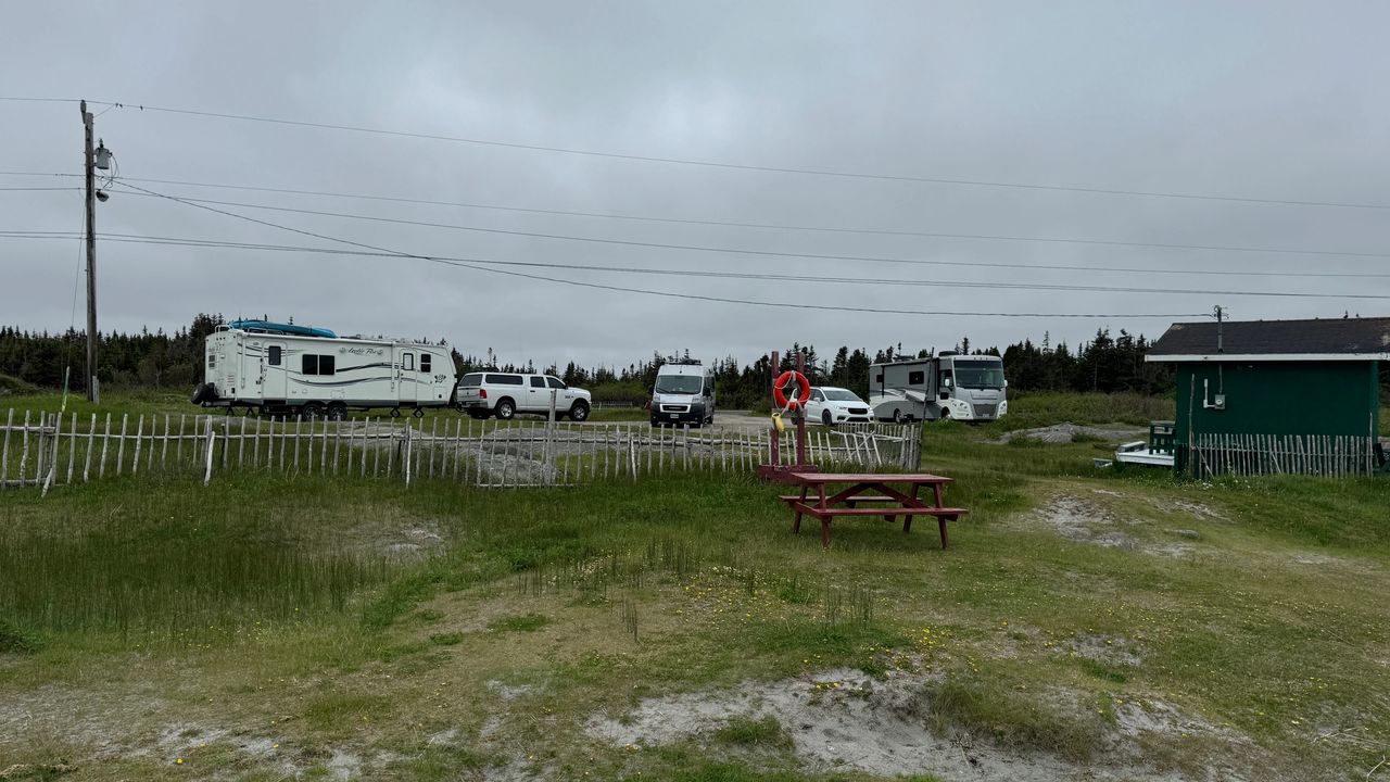 Today was a travel day, and a rain day unfortunately. We only drive 46 miles to the Fogo Island Ferry terminal, expecting the to wait a few hours for a ferry, but with luck, the 10:30 ferry was over an hour late. We only wait about 30 minutes to board the ferry to Fogo Island. Once on the island Two ferries away from the mainland, we trek across the island in search of a good boondock spot. We stopped at the visitor center for some inside info, then we head down the road. We avoid Fogo camp ground as we don't like RV parks, we find a spot in Joe Batt's Arm, but it already had a couple RV's and was small and crowded municipal park. We unhook the Jeep and drive farther down the road to Tilting Cove another target boondock spot. Score! we find an empty beach spot and we nose up to the beach in the cove with our buddies that are with us. One other camper came in, but we had the best spots on the cove. Now if the sun would just come out tomorrow it will be perfect. No hikes, no adventures today, just a travel day in Newfoundland and another Ferry ride. A local did drop by, Roy Dwyer, a NL writer and story teller, (said so on his magnetic door sign on his pickup). Roy showed us his books, he even read us a poem from one, a real local Newfie. So we bought a couple :)